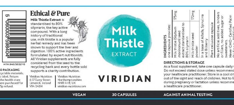 Ingredients: Standardised milk thistle seed extract (80% silymarin), milk thistle seed powder in a base of alfalfa, spirulina and bilberry, plant cellulose capsule.